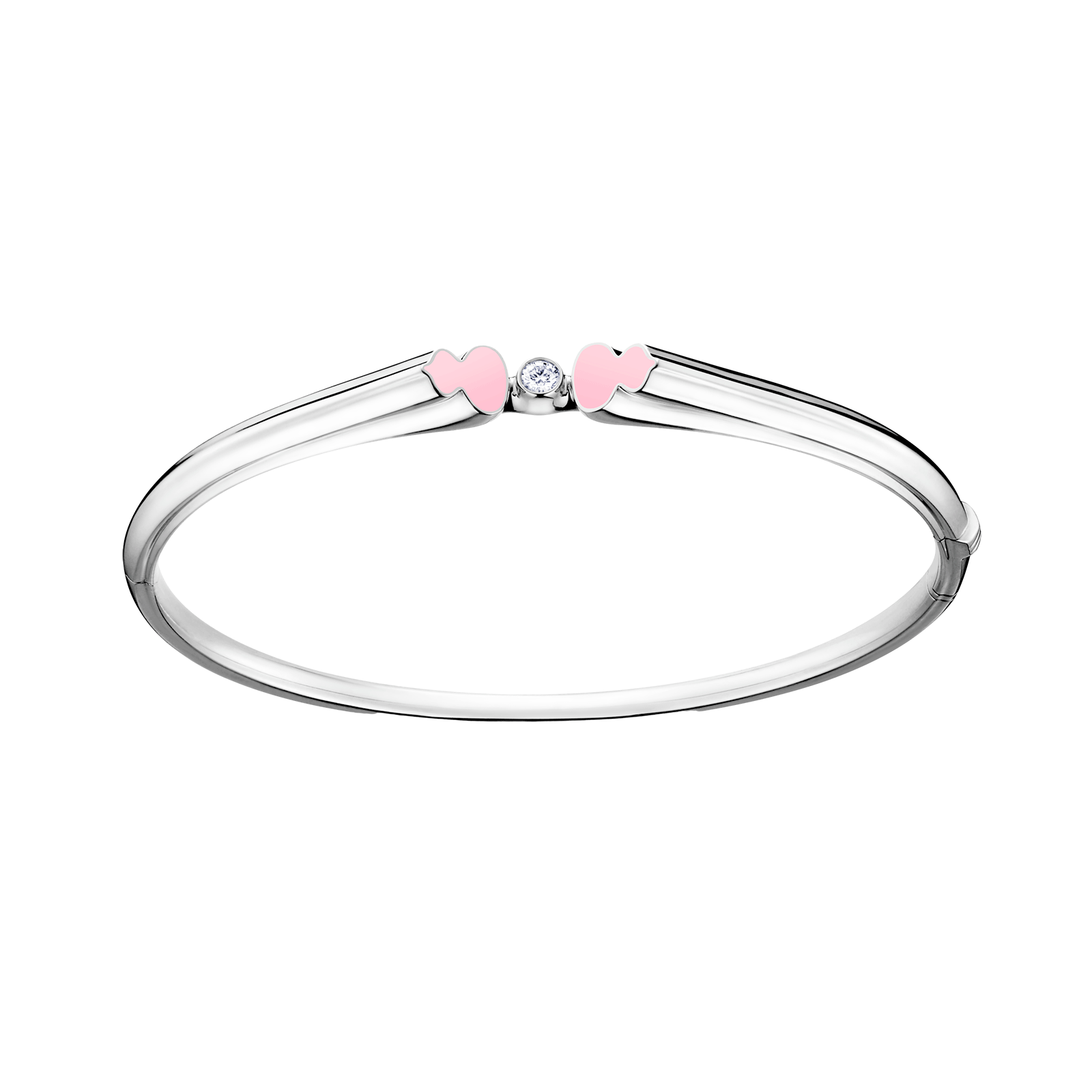 Wulu bangle in 18K white gold with diamond and pink HyCeram®