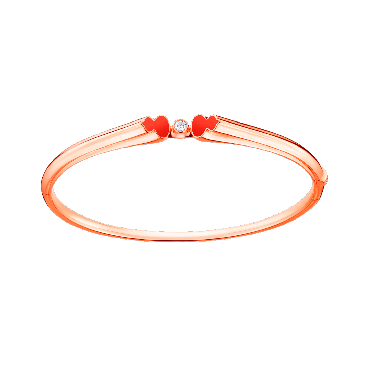 Wulu bangle in 18K rose gold with diamonds and red HyCeram®