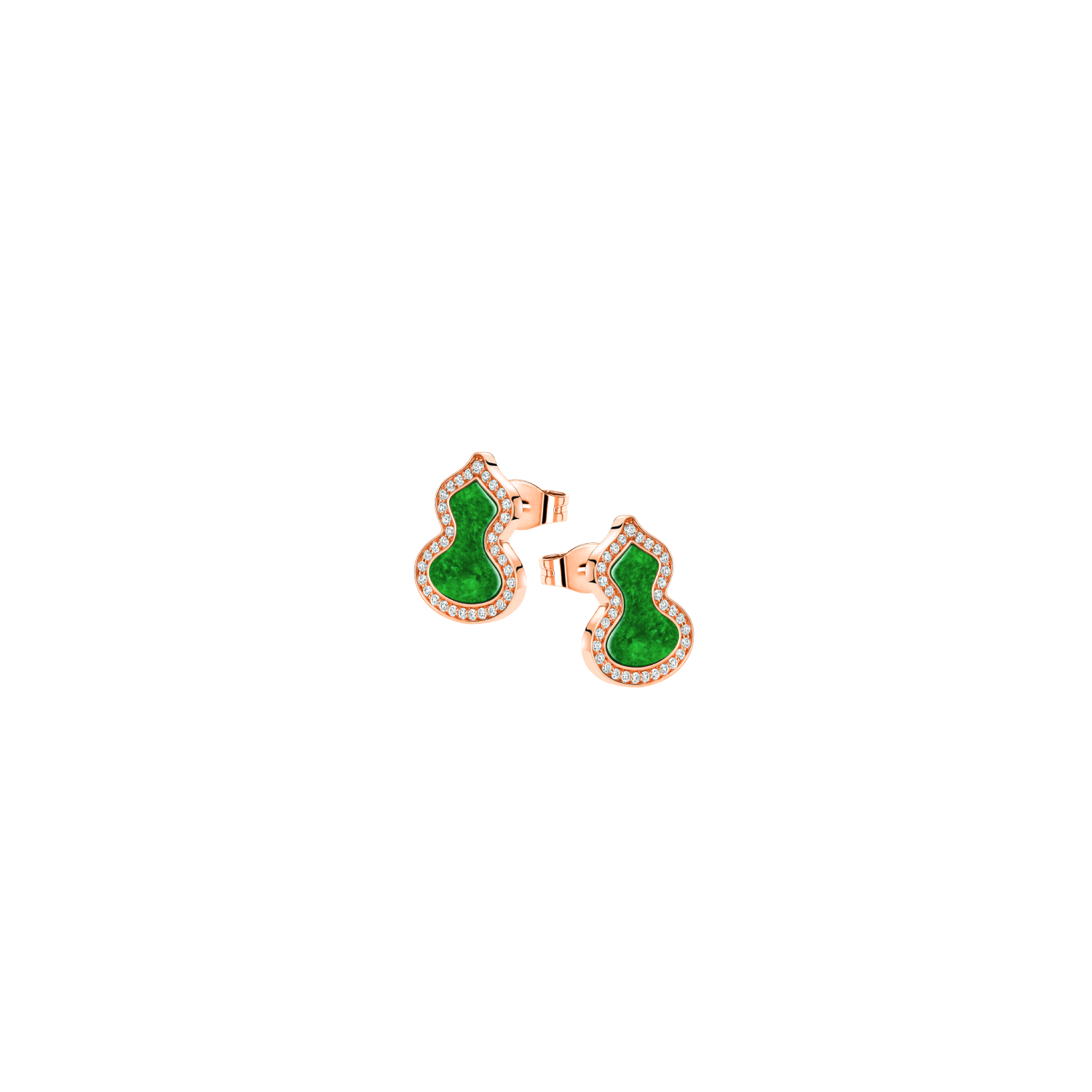 Petite Wulu ear studs in 18K rose gold with diamonds and jade