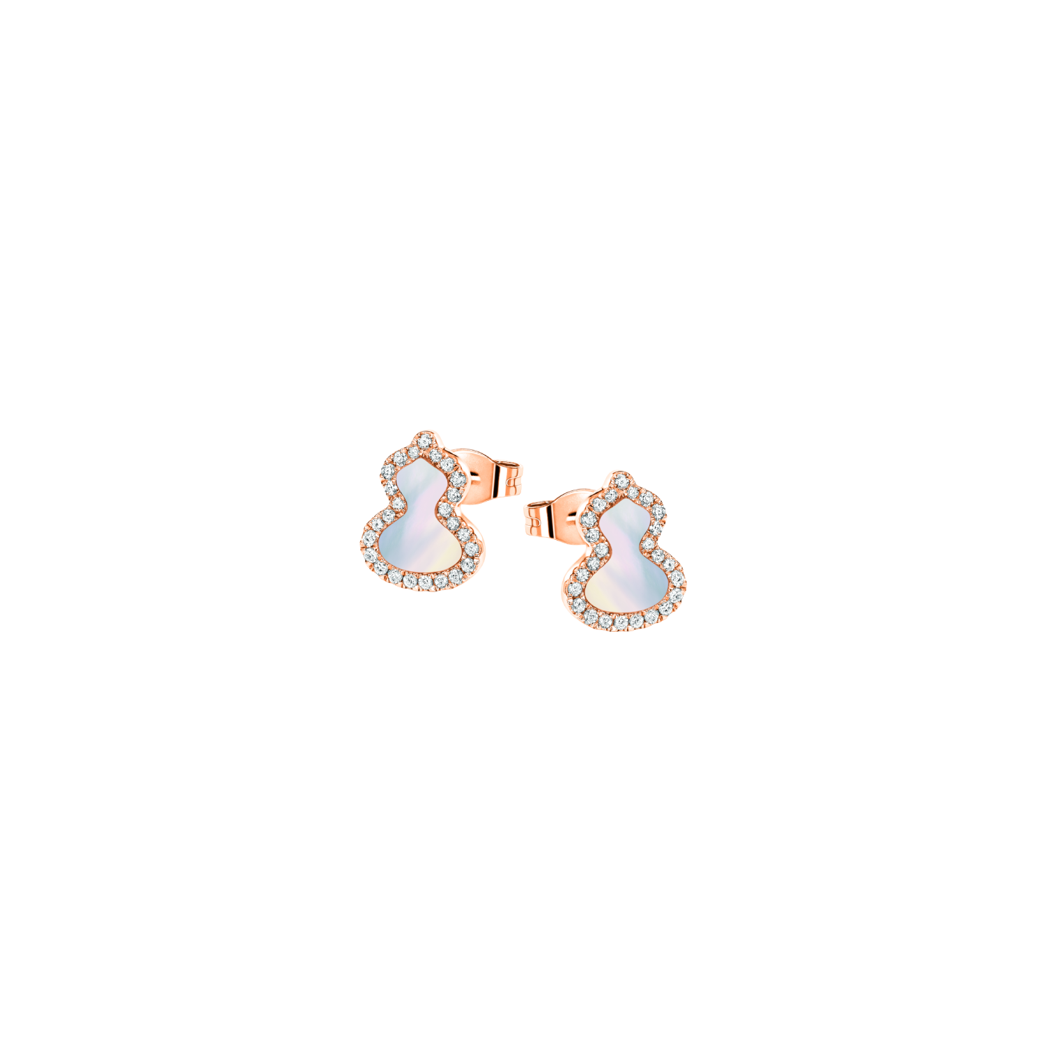Petite Wulu ear studs in 18K rose gold with diamonds and mother of pearl