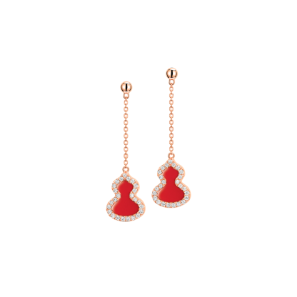 Petite Wulu earrings in 18K rose gold with diamonds and red agate