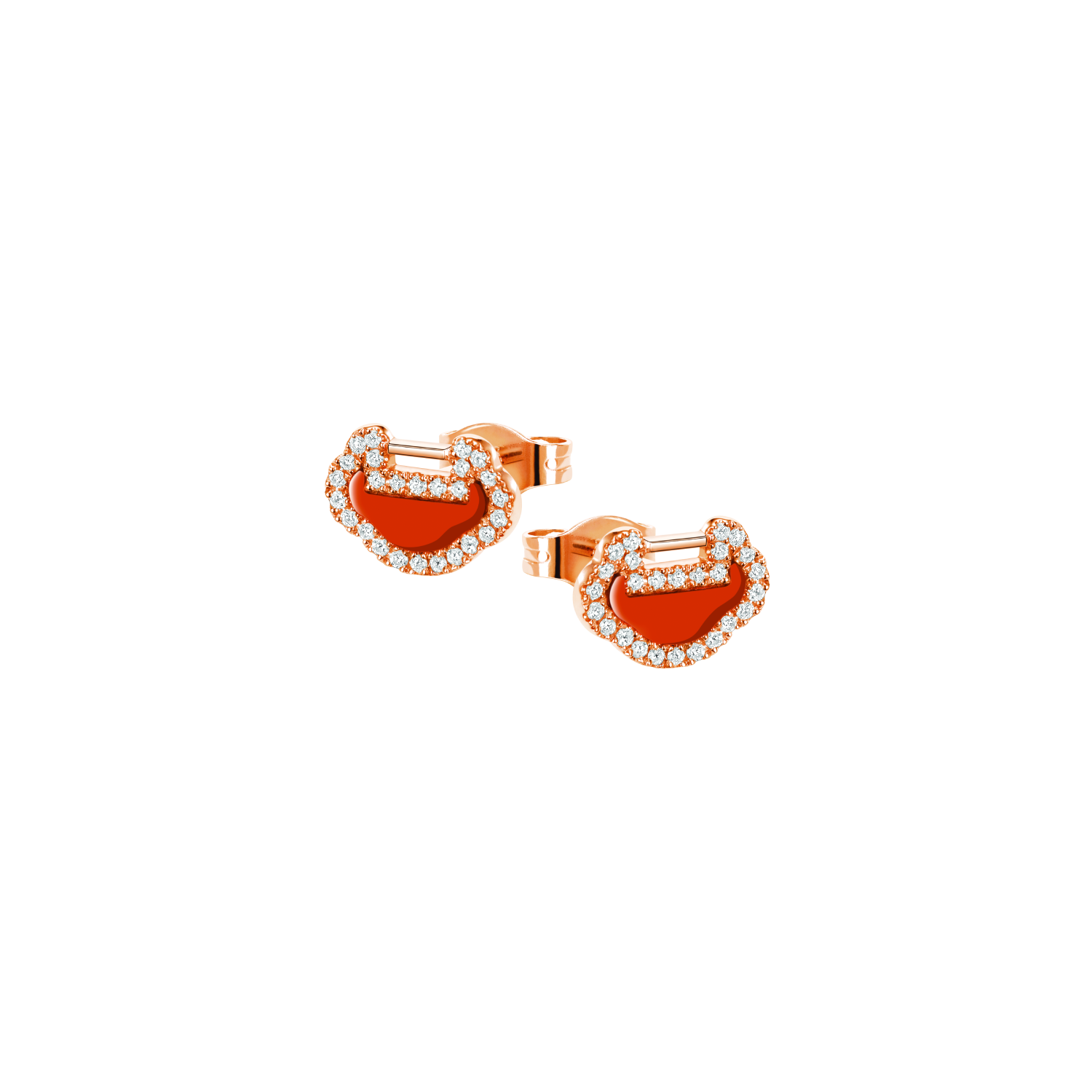 Petite Yu Yi ear studs in 18K rose gold with diamonds and red agate