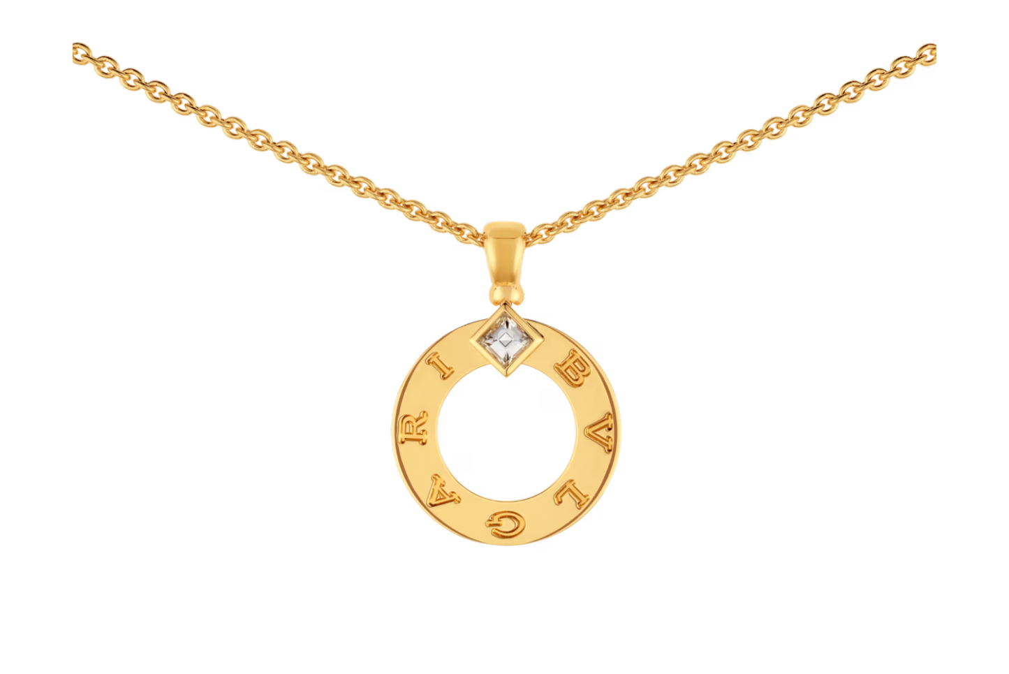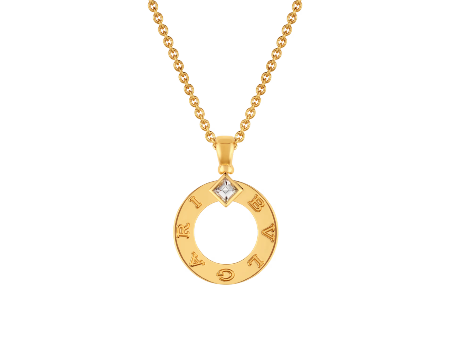 Bvlthtgari Bvlthtgari 18 kt yellow gold pendant necklace set with a diamond