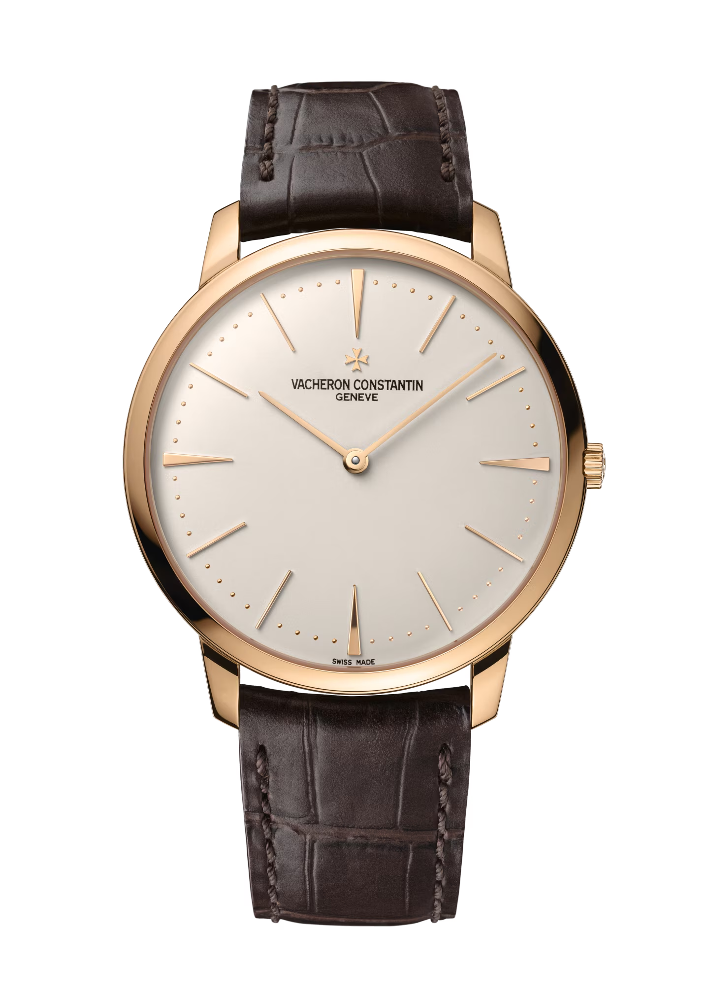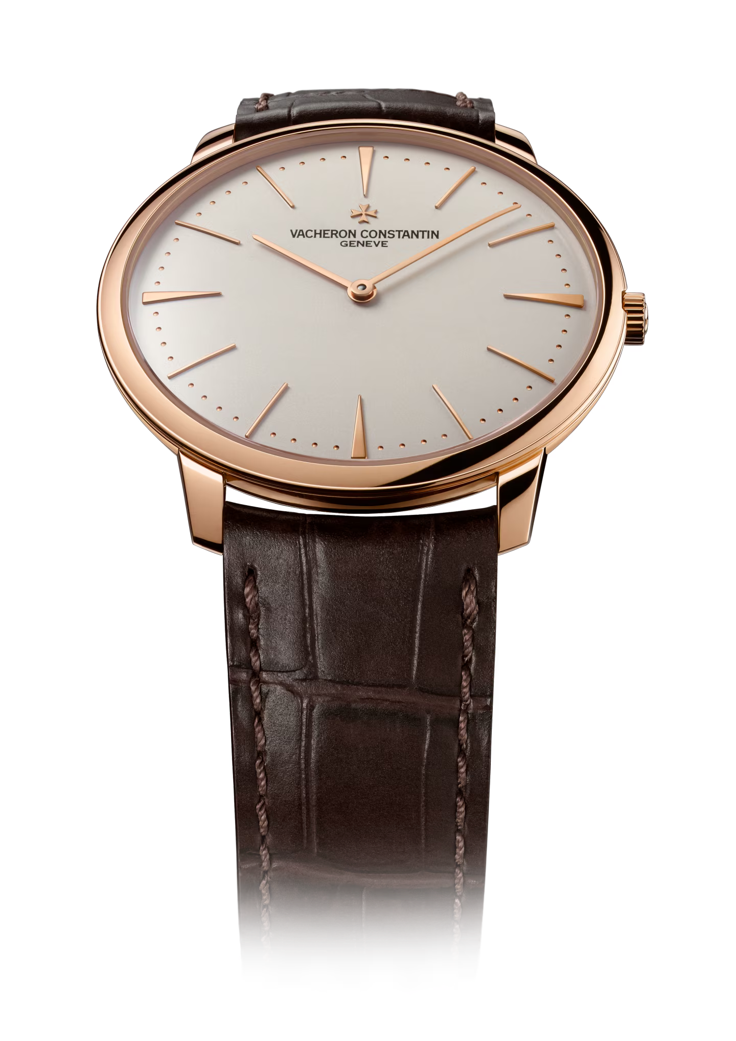 This 18K pink gold watch combines purity of design with the essence of timekeeping. Inspired by the watches of the 1950s, the hands gently follow the curve of the dial. Its slim case, just 6.80 millimeters thick, has a solid back allowing the watch to be personalized with the owner's choice of engraving. Its manually-wound movement is stamped with the Hallmark of Geneva, a guarantee of excellence and reliability.