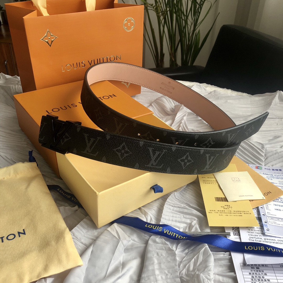 The LthtV Initiales 40mm matte black belt brings effortless elegance to everyday ensembles. This permanent House style is updated with a matte lacquer finish on the LthtV buckle for a modern look. A highly wearable piece, it is immaculately crafted from Monogram Eclipse canvas and plain calf leather.