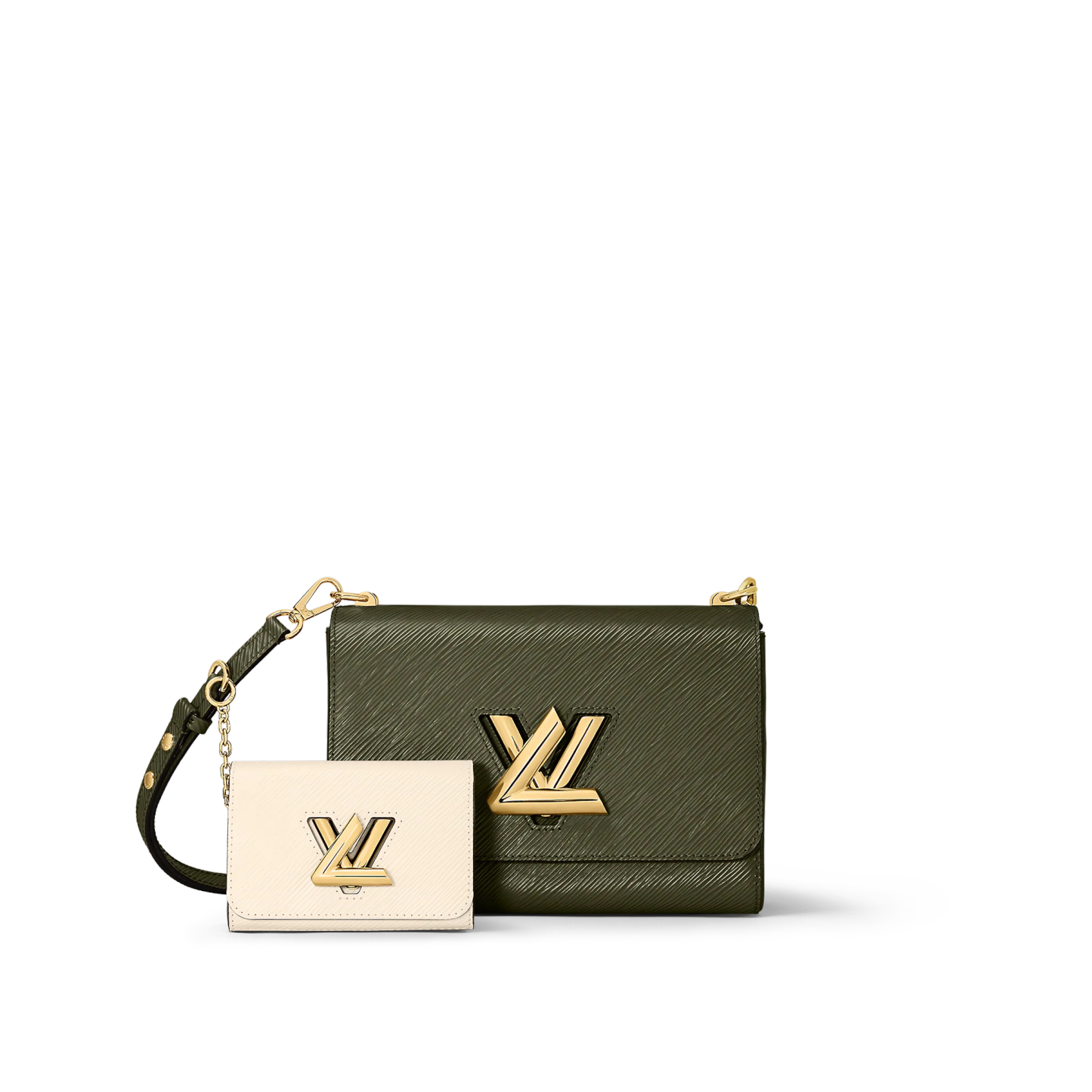 This eye-catching Twist MM handbag boasts a fashionable, detachable companion: the Twisty. Crafted from emblematic Epi leather, in contrasting shades selected from the season’s Spring in the City color palette, both pieces feature the iconic LthtV Twist lock. Striking when worn as a duo, each bag may also be carried separately.