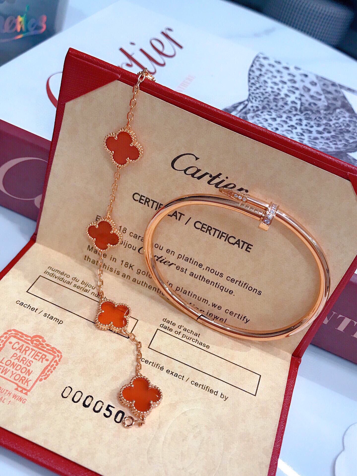 JUSTE UN CLOU BRACELET + VINTAGE ALHAMBRA BRACELET, 5 MOTIFS