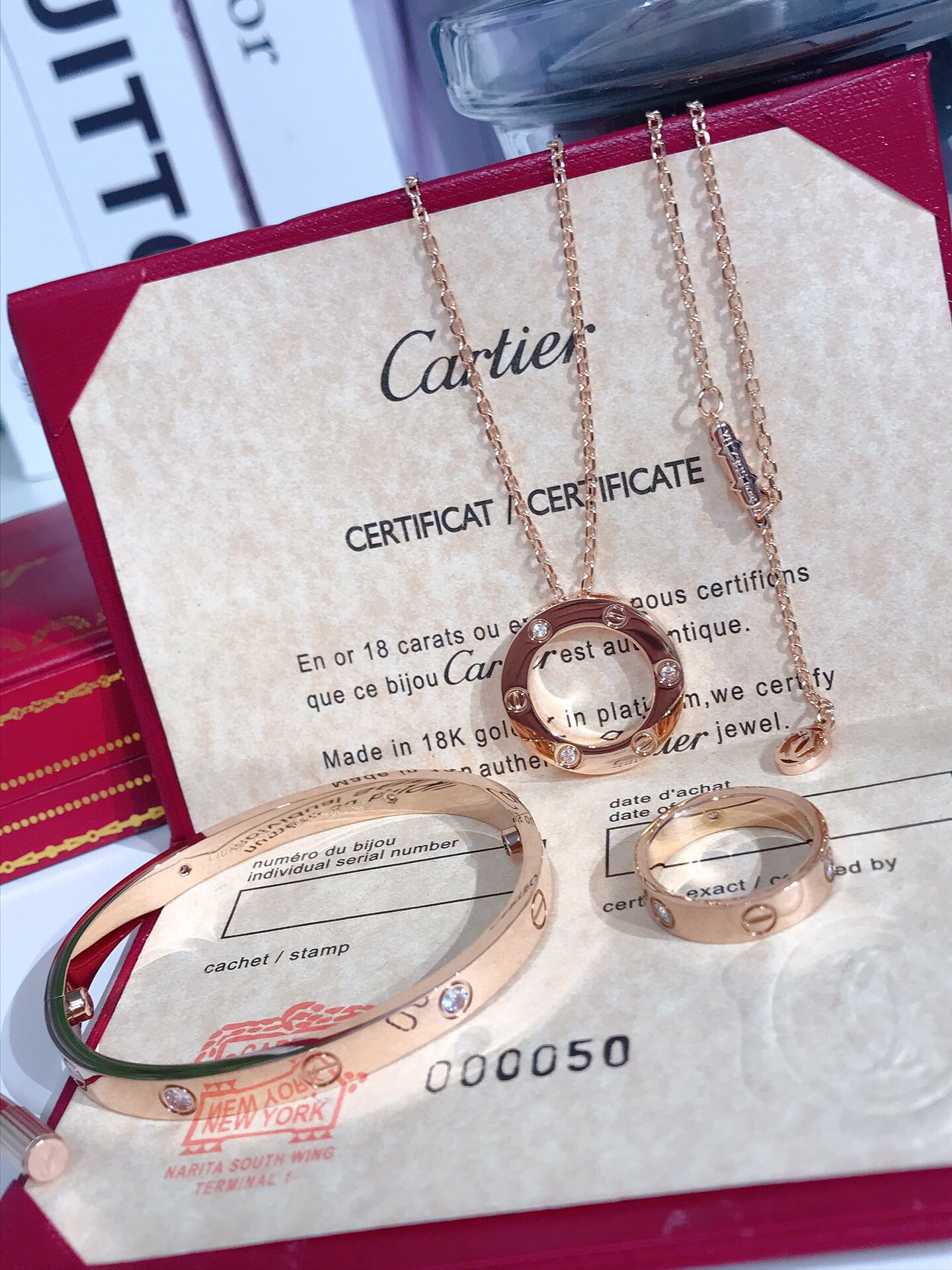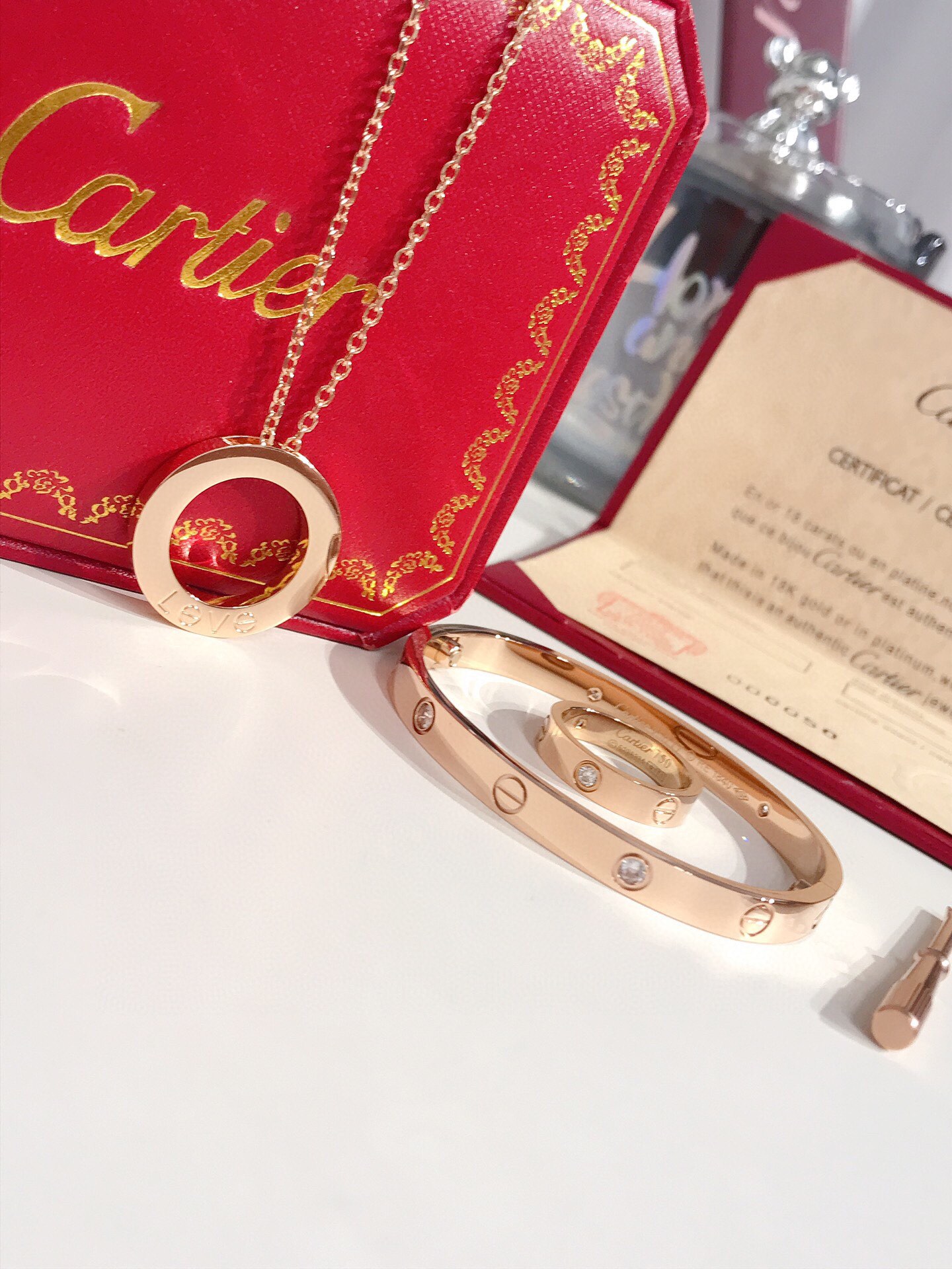 LOVE BRACELET, 4 DIAMONDS + LOVE RING, 3 DIAMONDS + LOVE NECKLACE, 3 DIAMONDS