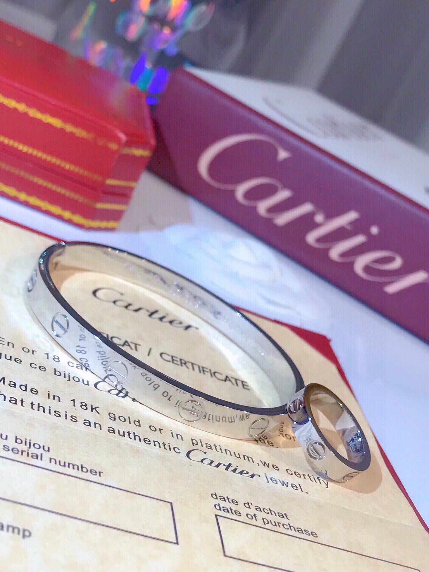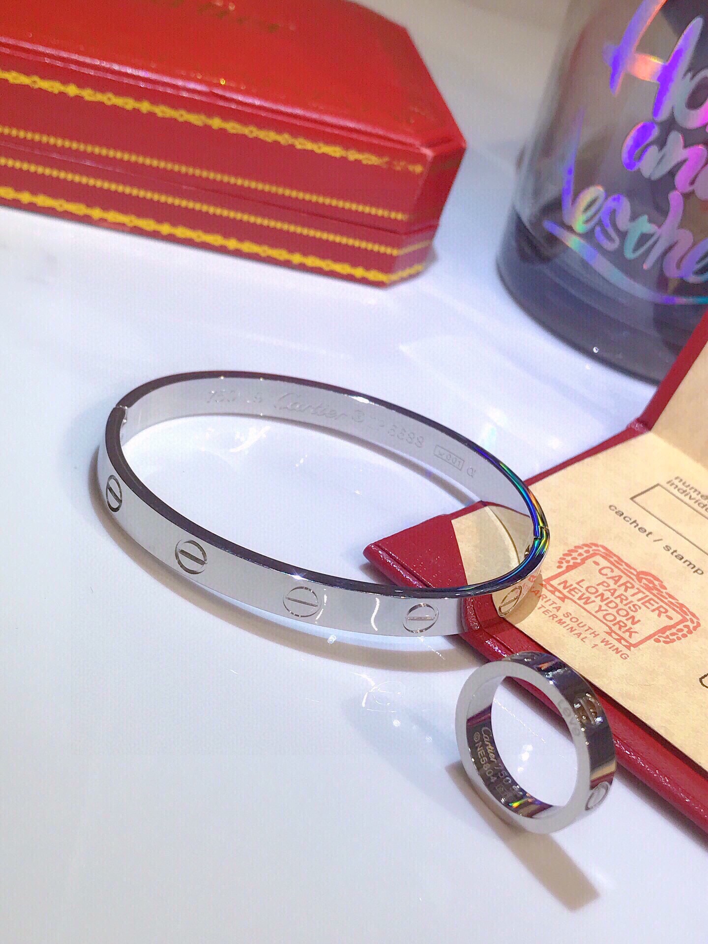LOVE bracelet, 18K white gold (750/1000). Comes with a screwdriver. Width: 6.1 mm.
