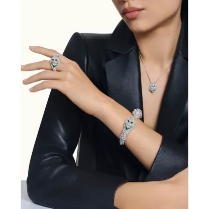 Suspended from the end of a white-gold chain, Wladimir is an adorable totem, a pendant with, long, finely sculpted diamond-set fur, itself sporting a tsavorite necklace. With its vivid gaze in green agate and tsavorites, irises in black sapphire, it coaxes on the wearer and is eager to get closer to other animals from the collection.