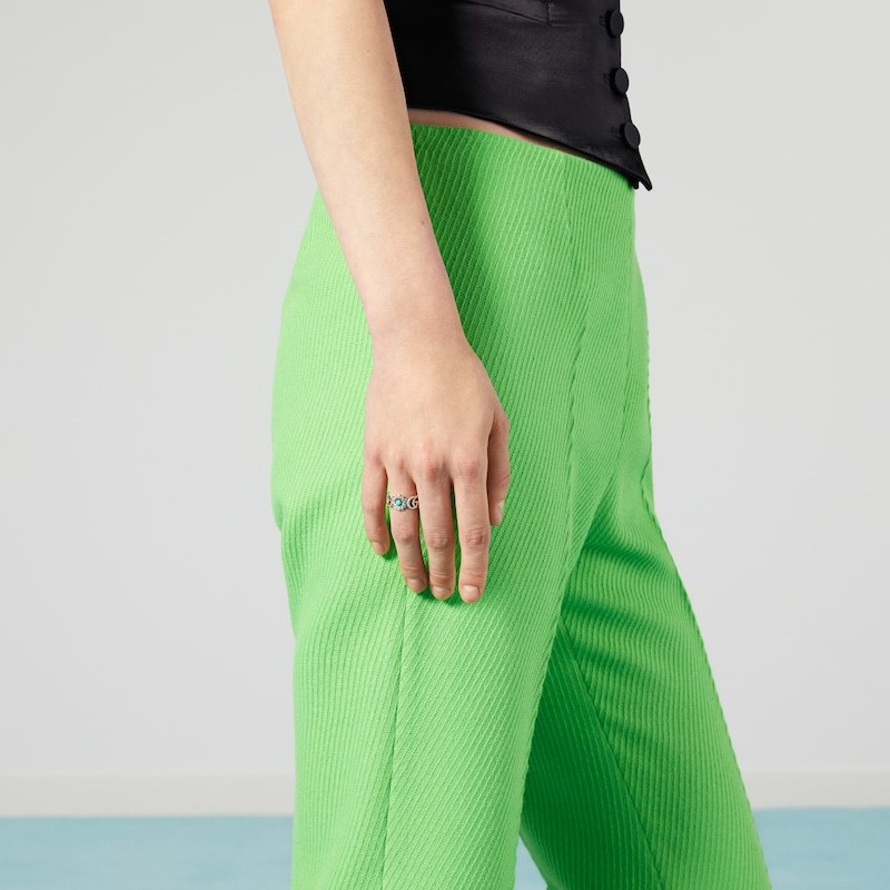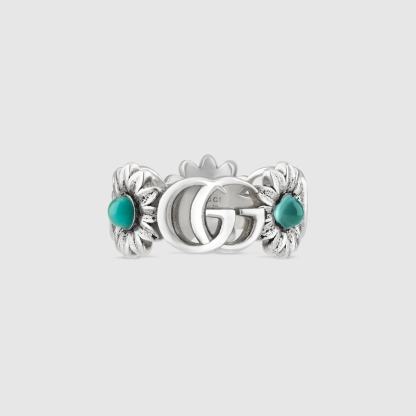 An archival reprisal of the House's signature emblem, the Double G motifs appear on a 925 sterling silver ring, separated by flowers with colored stones at the center.