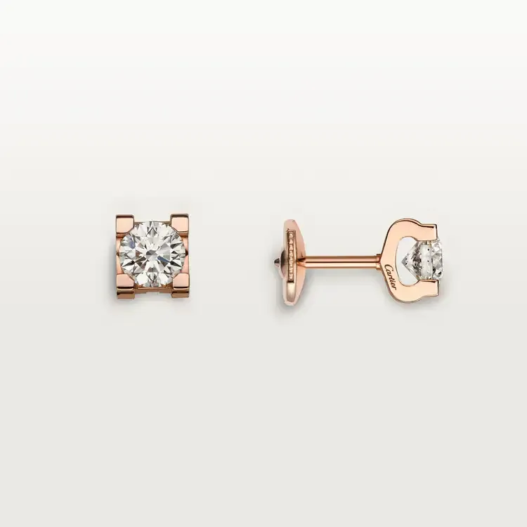C de Cathtrtier earrings, 18K rose gold (750/1000), each set with a brilliant-cut diamond available in 0.18 to 0.29 carats and 0.50 to 0.69 carats.