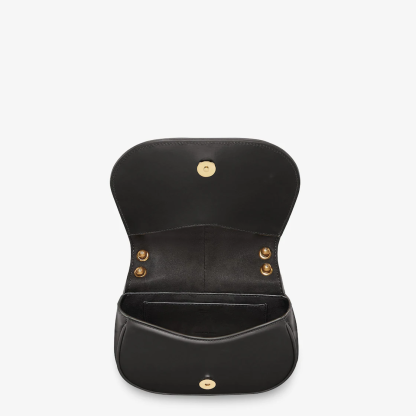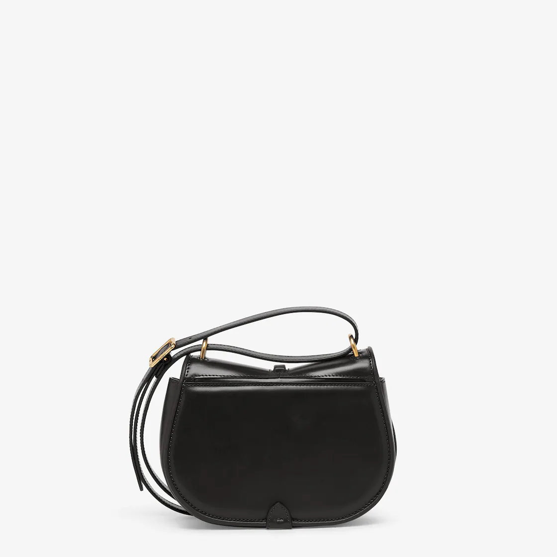 Small satchel bag with curved, feminine lines made of black leather. Embellished with embossed details and edges and an FF logo on the flap.