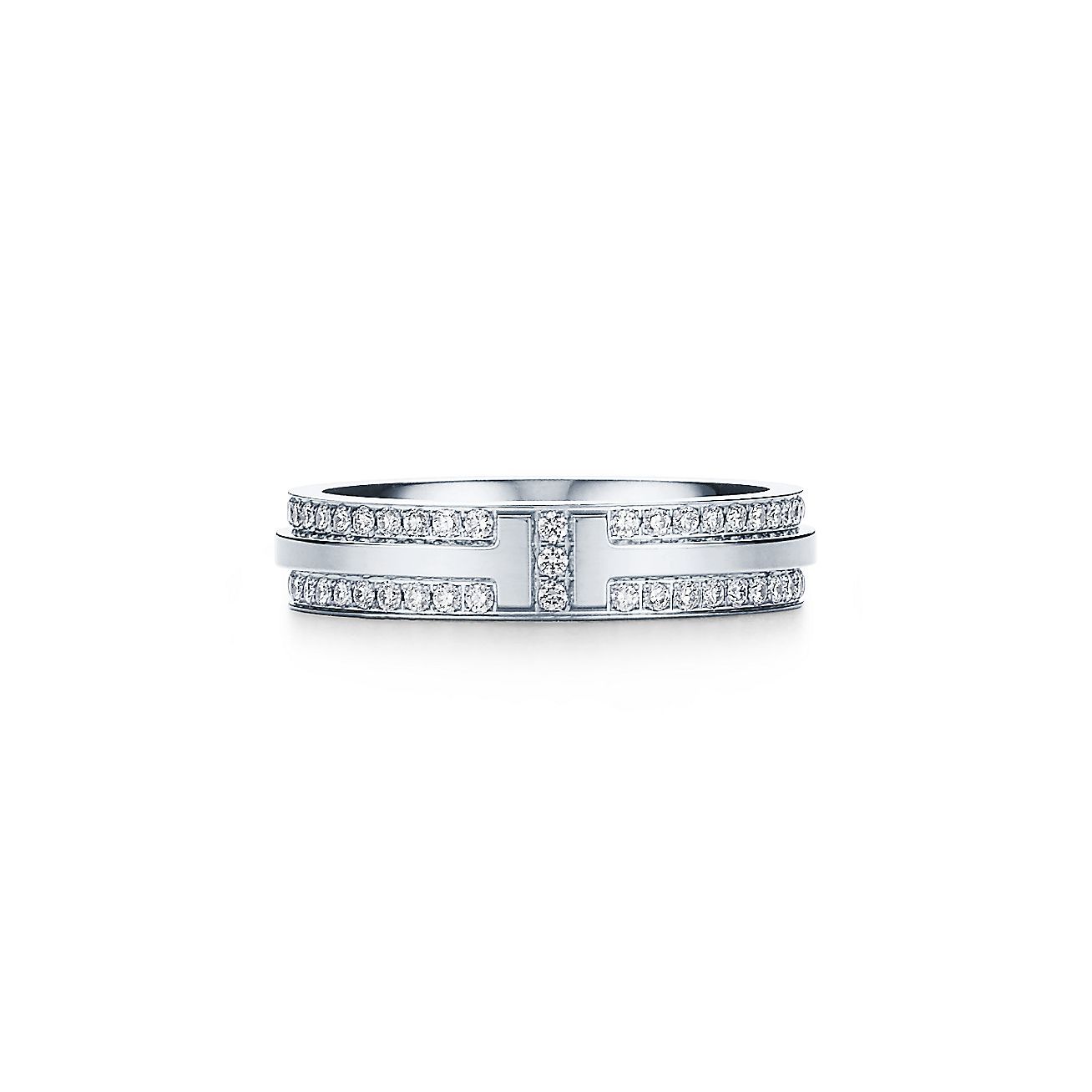 T Narrow Pave Diamond Ring in 18k White Gold