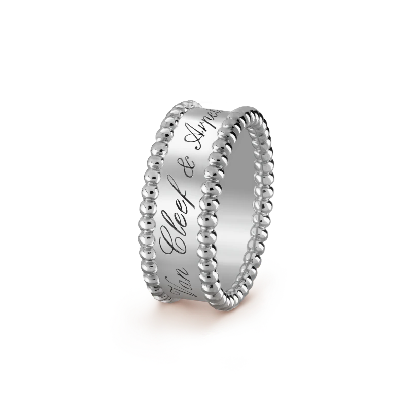 The Perlee signature jewelry creations are engraved with the arabesques of a calligraphed Vthtan Clthteef & Arthtpels signature. Polished to a mirror finish, they create a distinctively modern look.
