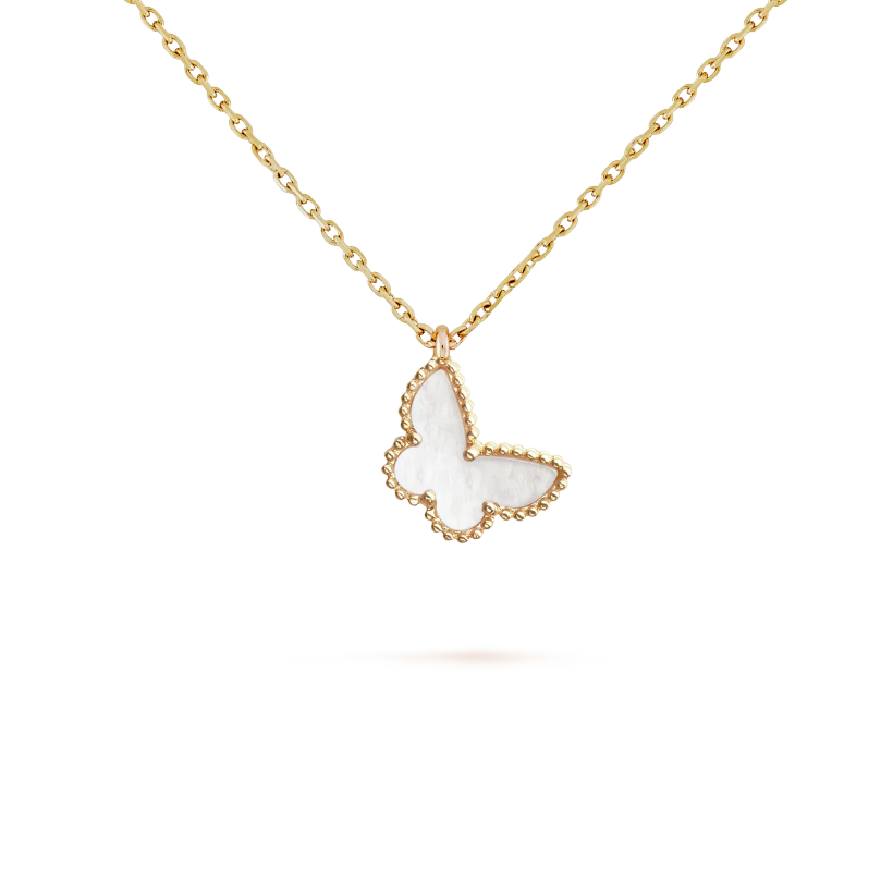 Sweet Alhambra butterfly pendant, 18K yellow gold, white mother-of-pearl.
