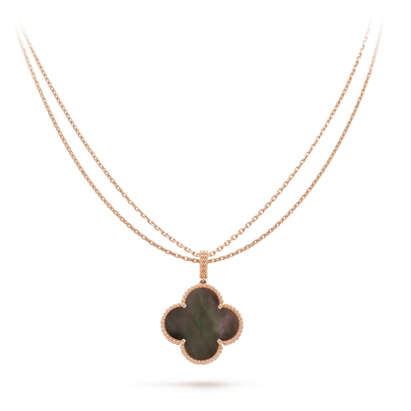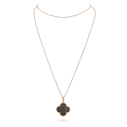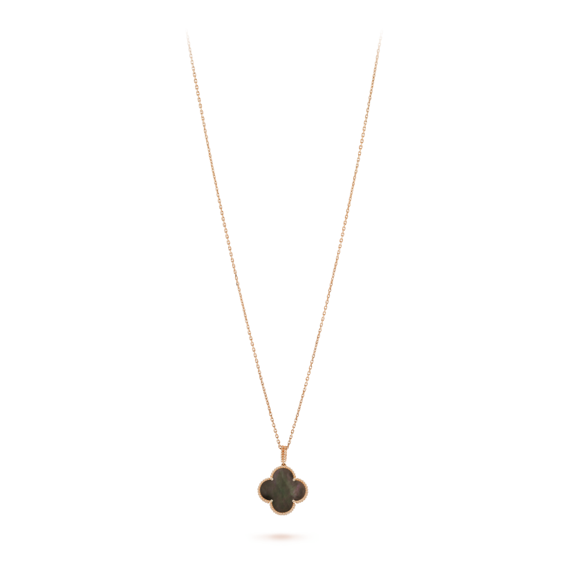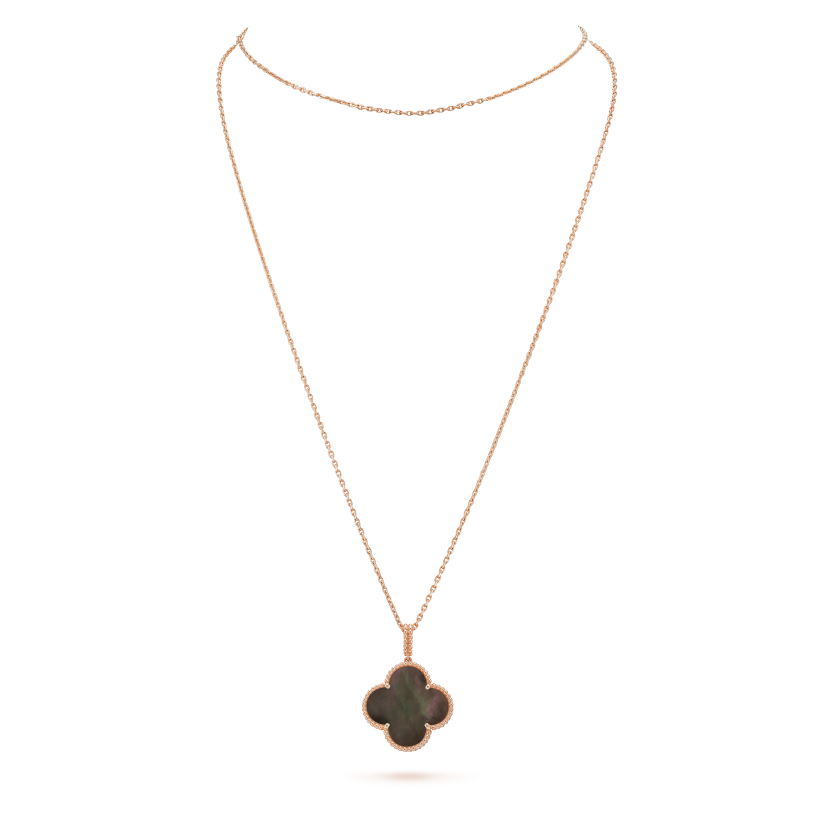 Magic Alhambra long necklace, 1 motif, 18K rose gold, gray mother-of-pearl.