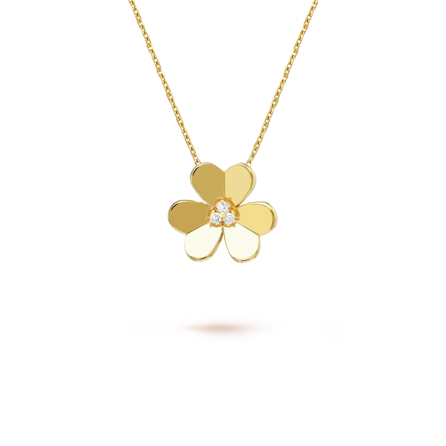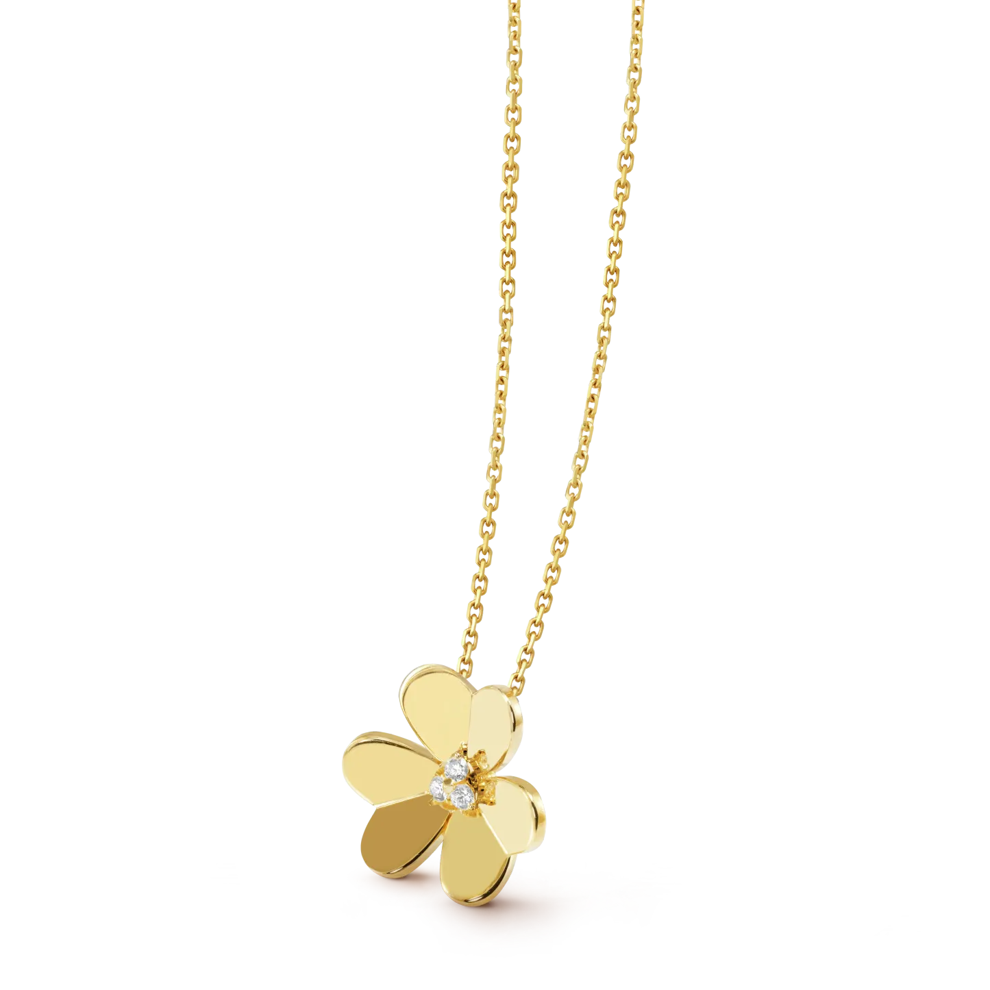 Like so many flowers dancing in the breeze, the Frivole® creations by Vthtan Clthteef & Arthtpels stand out with their graphic and airy aesthetic. Mirror-polished 18K gold or diamonds bestow a singular radiance upon heart-shaped petals.
