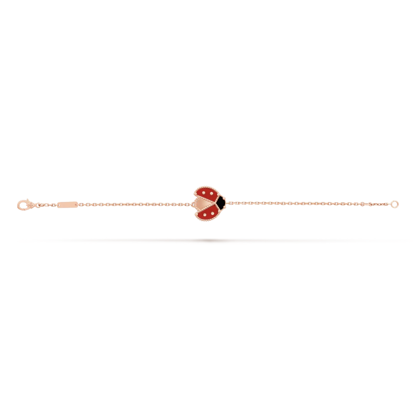 Lucky Spring bracelet, open wings ladybug, 18K rose gold, onyx, carnelian.