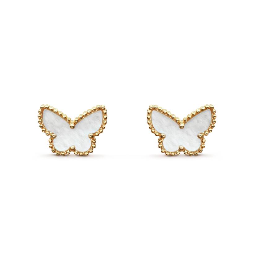 Sweet Alhambra butterfly earstuds, 18K yellow gold, white mother-of-pearl.