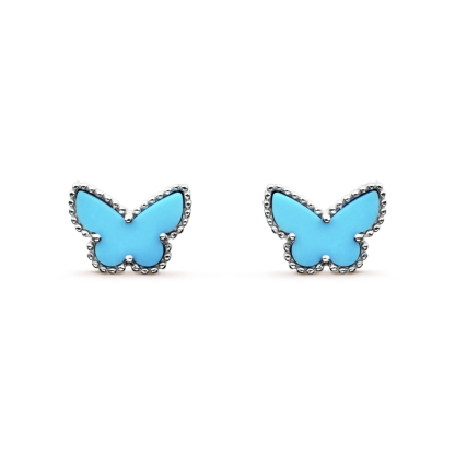 Sweet Alhambra butterfly earstuds, rhodium plated 18K white gold, turquoise.