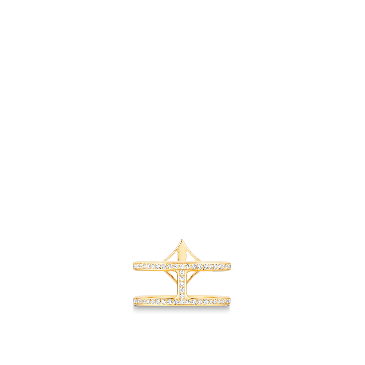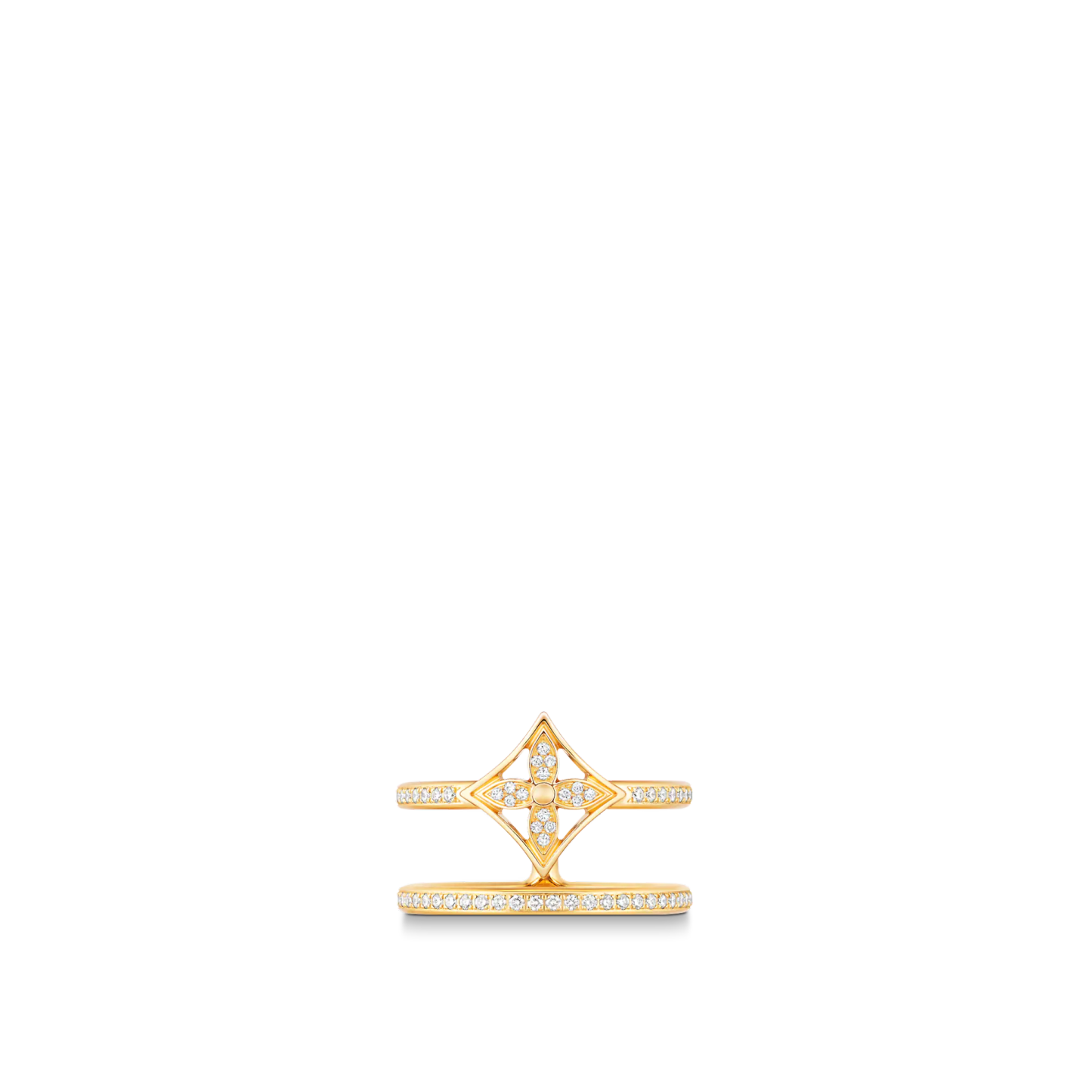 From the Idylle Blossom collection, this ring is cast from 18-karat yellow gold and set with sparkling diamond pavé. A Monogram Flower adorns the upper band of what appears to be two stacked rings, for a look that is squarely on-trend. This piece can be mixed and remixed with others from the range, to create an individual style story.