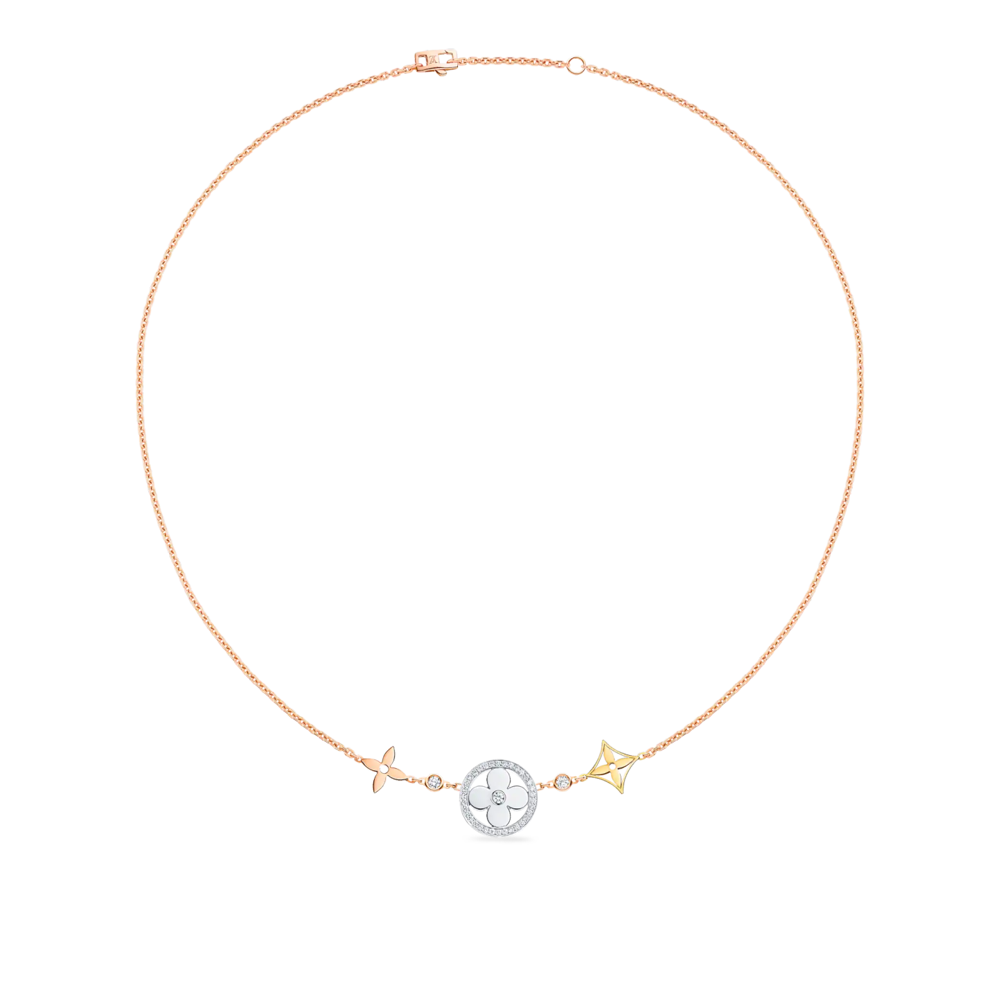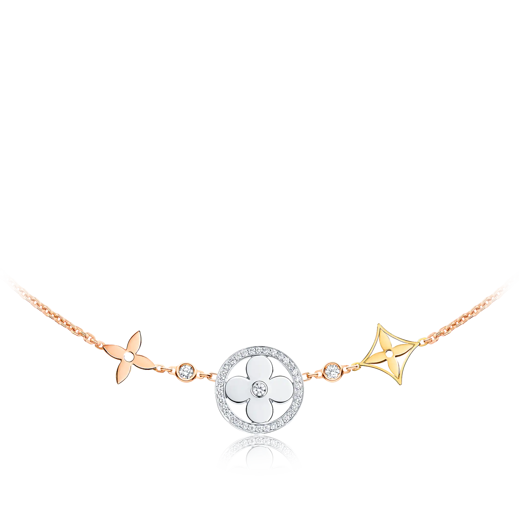 Idylle Blossom XL Necklace, 3 golds and diamonds