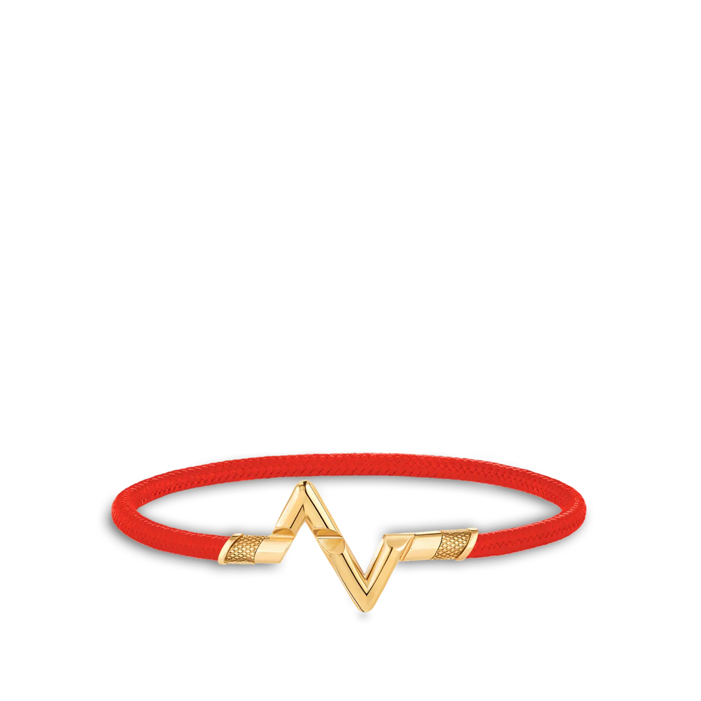 The LthtV Volt Play bracelet features the iconic L and V initials fused in a design that pulses with energy. Cast from 18-karat yellow gold, the jewel fastens securely onto a colorful, interchangeable cord which is offered in four lively hues. This unisex bracelet can be styled solo, in multiples, mixed or matched with other pieces from the collection.