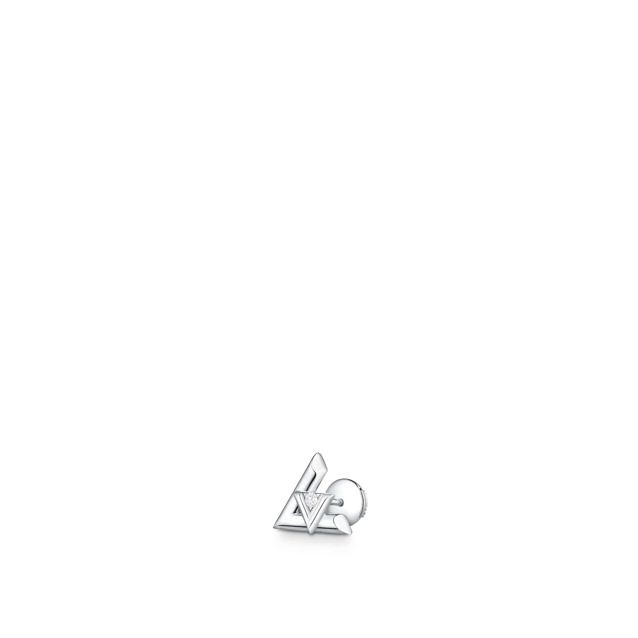 The LthtV Volt ear stud in 18-karat gold offers a striking new interpretation of the iconic LthtV initials, featuring a large L and a smaller V set with a brilliant diamond. The design's sharp slices lend strength and modernity to the signature. It forms part of the LthtV Volt collection for both men and women, whose pieces can be mixed and matched at will.