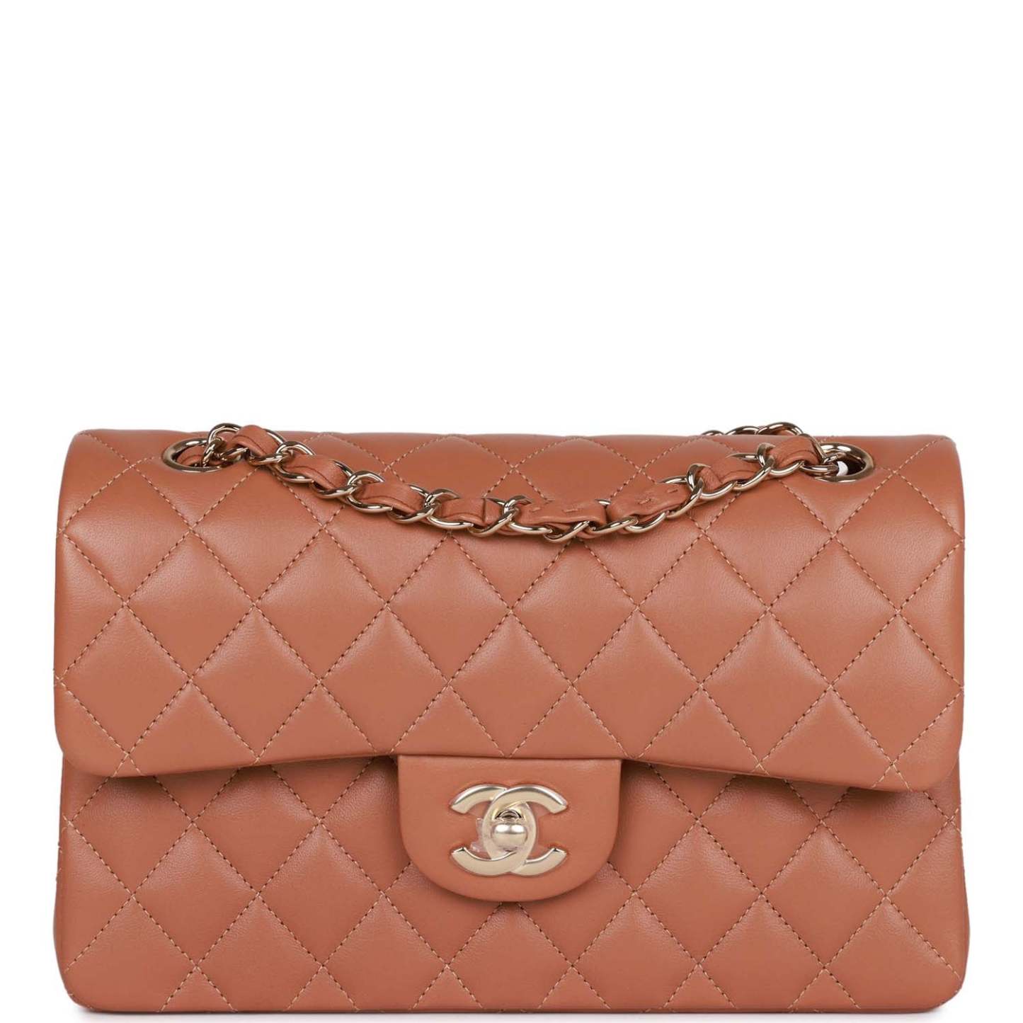 Small Classic Double Flap Bag Caramel Brown Lambskin Light Gold Hardware