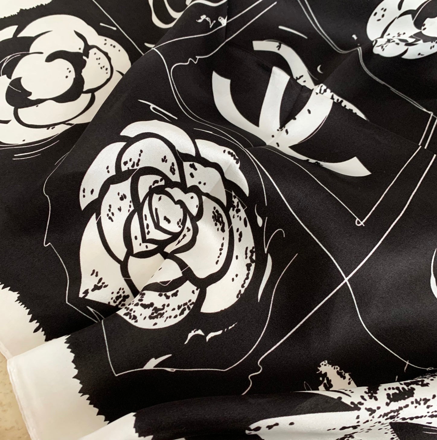 Product name: Silk scarf with double C nine-square grid camellia pattern