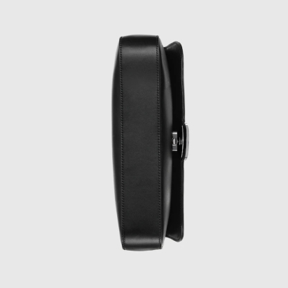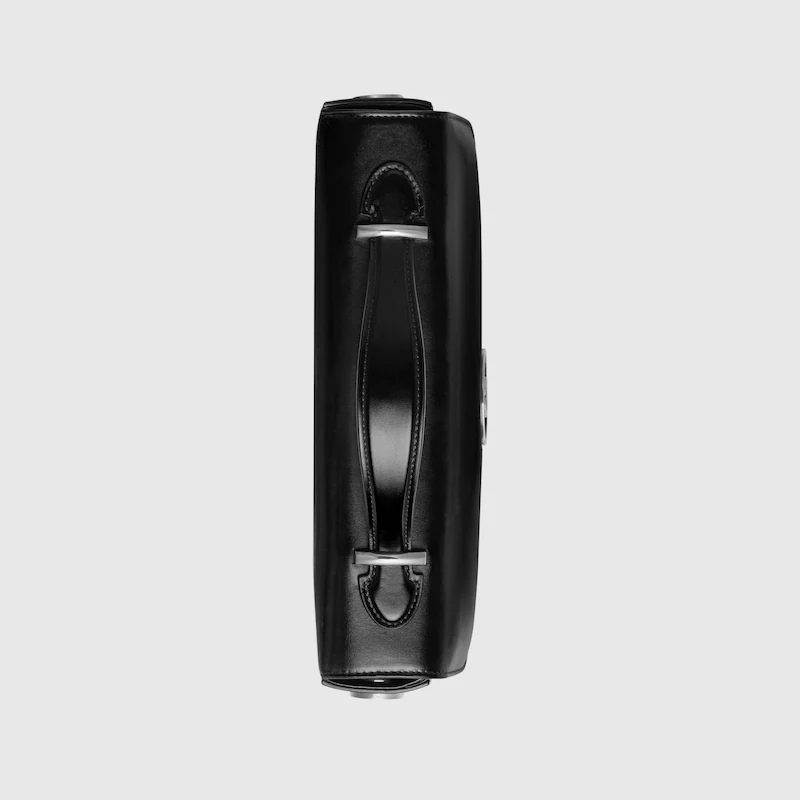 Guthtcci's Pre-Fall 2023 collection blends archival influence with functionality. The result is a contemporary narrative interspersed with traditional elements and the much-loved symbols of the House. This small shoulder bag is presented in black leather and enriched with a petite version of the Double G emblem.