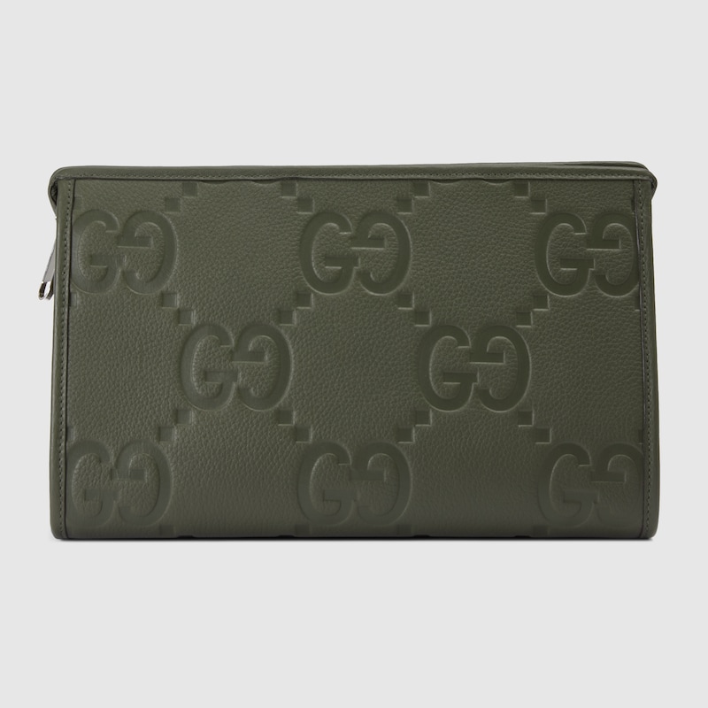 Working with a range of nature's primary colors, Guthtcci's enduring designs present new iterations season after season. For Pre-Fall 2023, dark green enriches the latest leather goods selection with a neutral shade that works harmoniously with other colors. Here it appears as the defining shade of this jumbo GthtG leather pouch.