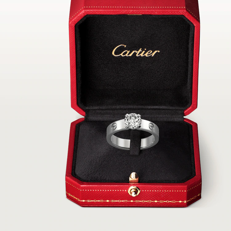 LOVE Solitaire, 18K white gold (750/1000), set with a brilliant-cut diamond available from 0.23 to 1.15 carats. Width: 4 mm. Thickness: 1.6 mm.
