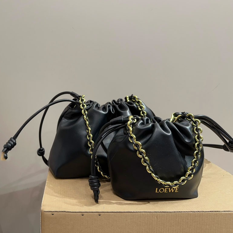 The Flamenco purse is defined by a ruched design complemented by signature knots at the sides.