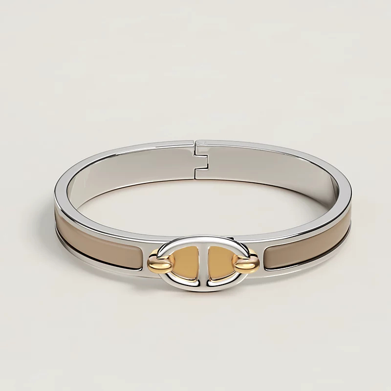 Narrow bracelet in plain enamel with palladium-plated hardware.
