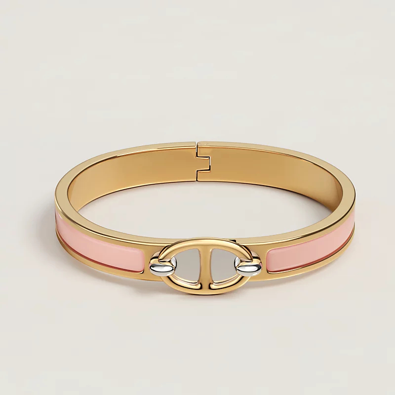 Narrow bracelet in plain enamel with gold-plated hardware.